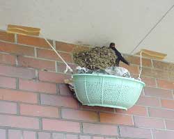 ツバメの巣はよく落ちます。ツバメの相談をよく受けるという知り合いの大工さんは軒下に棚を作って、浅いかごに巣を乗せて固定するそうですが、これまでのところ100%の確率で子育てがつづいているそうです。壁に固定せず、つり下げたままでも良いそうです。スズメっ子クラブには、ガレージの中から外へなど少々場所を移しても子育てが続いたというたくさんのレポートが届いています。最後の項目までしっかり読んで、親鳥が来ることまで確認してあげましょう。